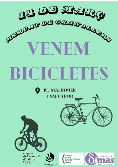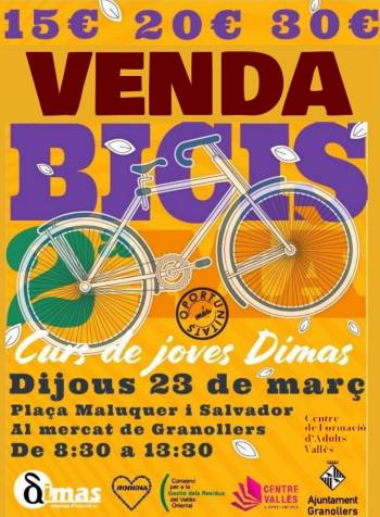 El nostre alumnat de CAT 1 - Més oportunitats estarà tot el matí de dijous 23 de març, dia de mercat a Granollers, amb una parada de bicicletes reciclades que han posat a punt perquè no tinguin res a envejar a una de nova però amb uns preus d'allò més assequibles.