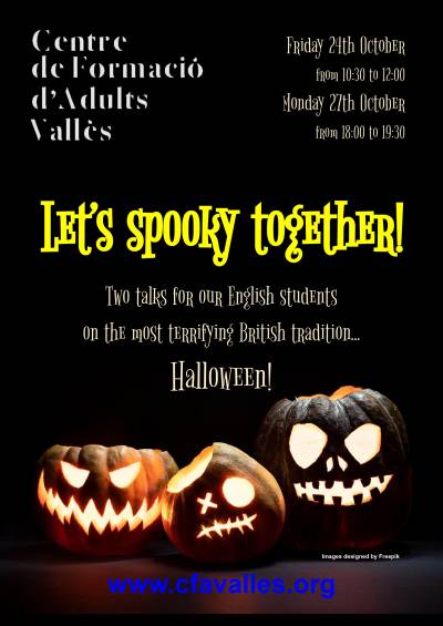 L'alumnat dels grups d'ANGLÈS està convidat a participar en una activitat cultural a càrrec de The Celtic Language School amb què debatrem sobre l'origen i les tradicions de Halloween en Irlanda i d'altres països anglosaxons.