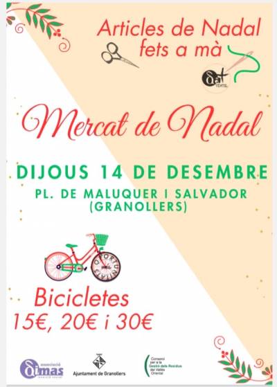 El nostre alumnat de CAT 1 - Més oportunitats estarà a la plaça Maluquer i Salvador tot el matí de dijous 14 de desembre, dia de mercat a Granollers, amb una parada de bicicletes reciclades que han posat a punt perquè no tinguin res a envejar a una de nova però amb uns preus d'allò més assequibles.