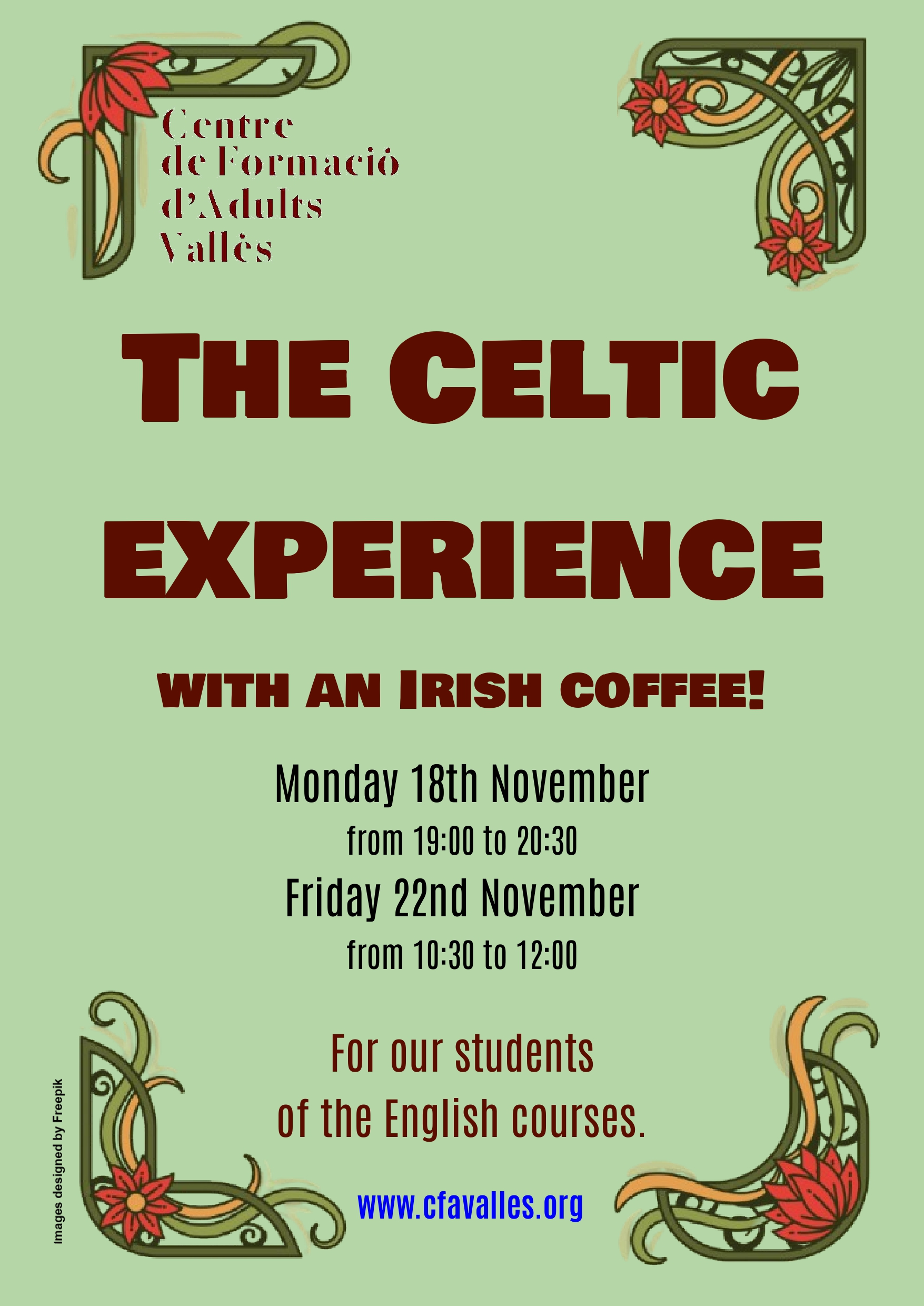 L'alumnat dels grups d'ANGLÈS participarà en una activitat cultural a càrrec de The Celtic Language School en què coneixerem la història d'Irlanda i les seves tradicions més populars.