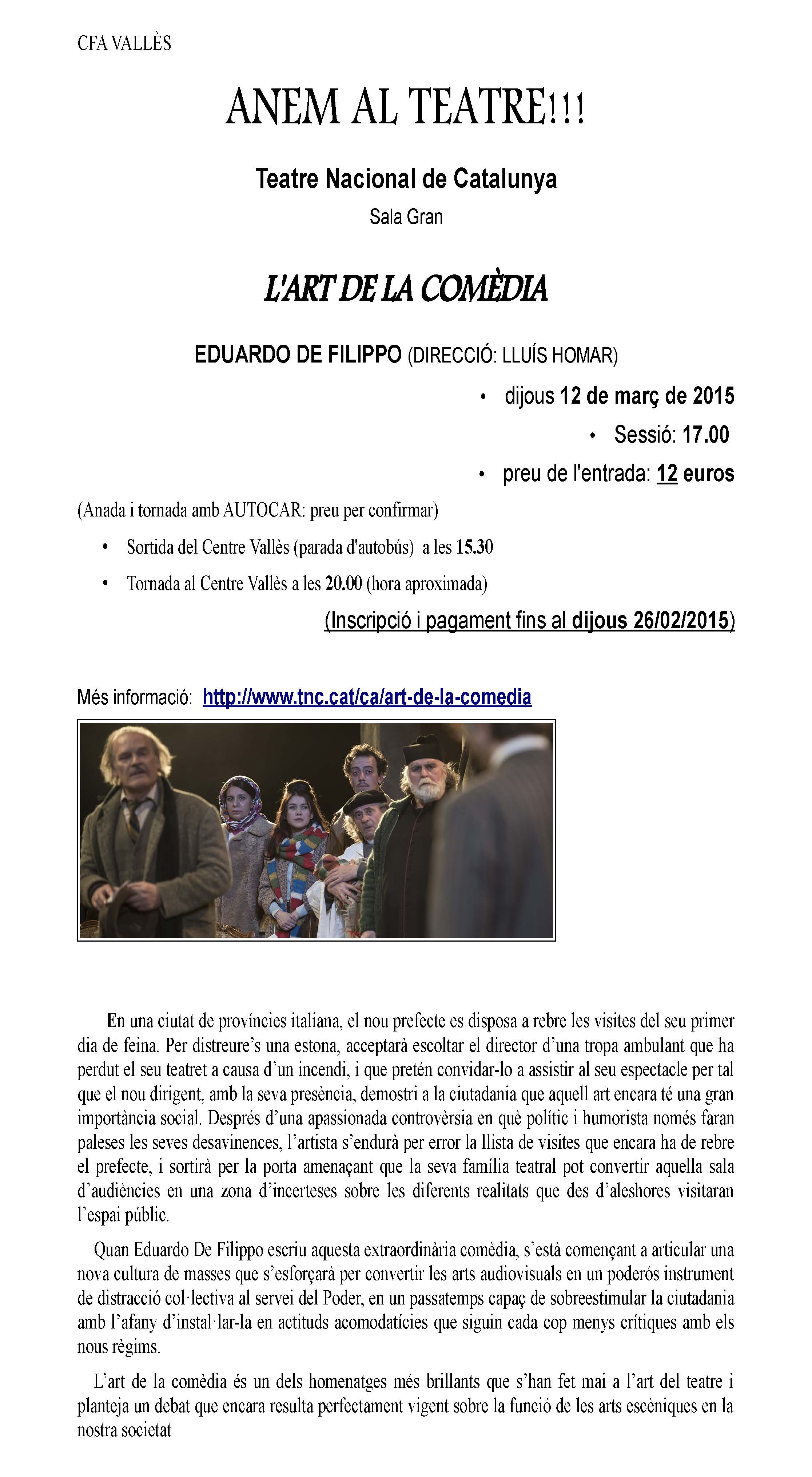 Anem al TEATRE! Teatre Nacional de Catalunya DIMECRES, 5 de juny, sessió a les 20.00 Llibertat, de Santiago Rusiñol