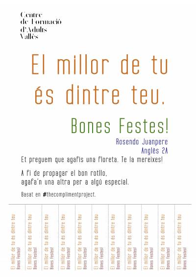 Què en farem, de les vostres frases? Es triaran les més originals i creatives i es crearan diversos pòsters amb què es felicitaran les festes, amb el nom i curs de la persona autor/a.