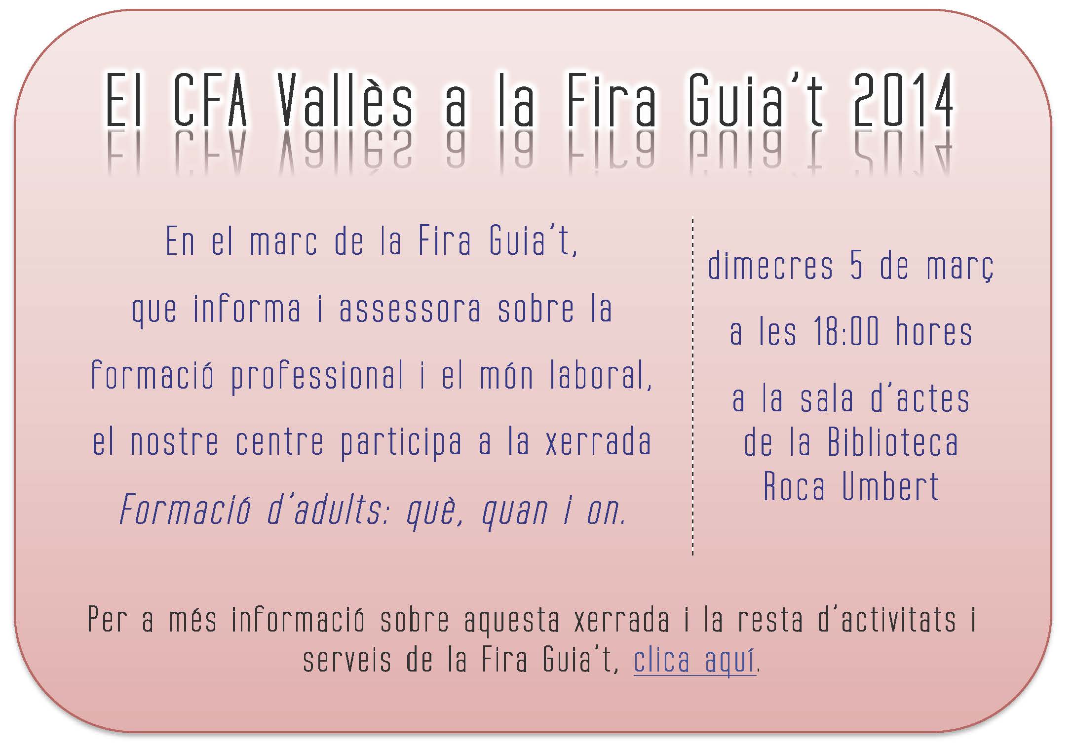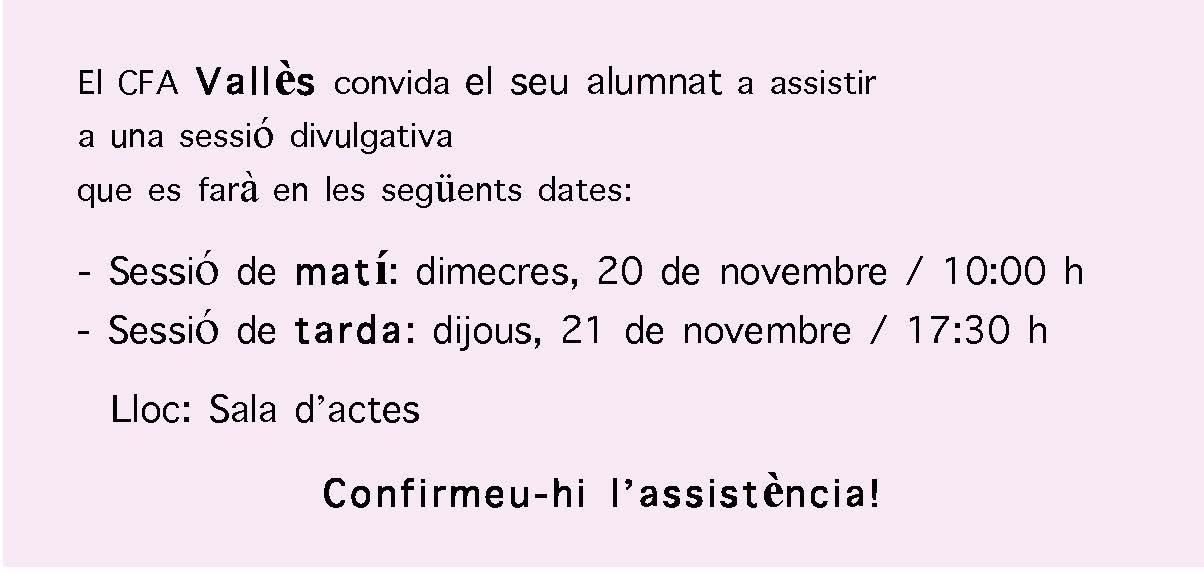 INFORMACIÓ SOBRE ELS TALLERS (només disponibles per a l'alumnat del CFA Vallès)