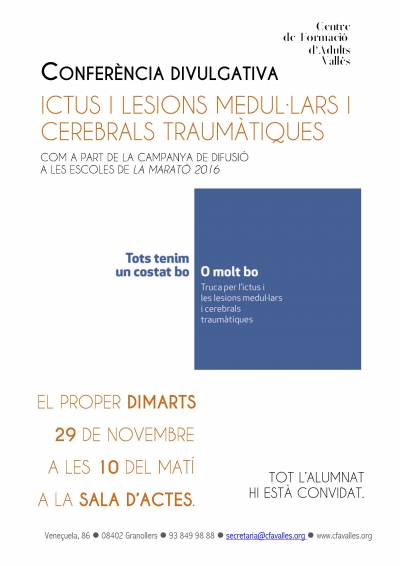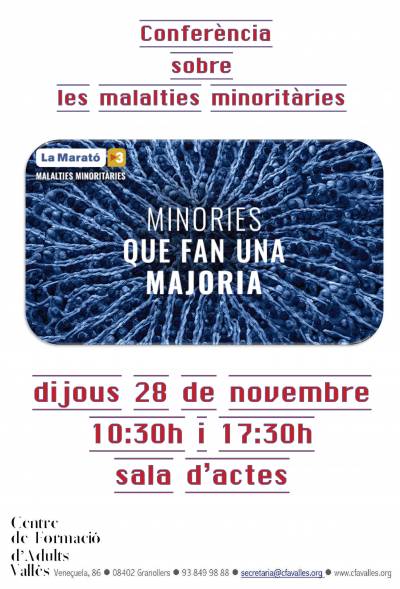 Us convidem a participar en una de les sessions divulgatives sobre les malalties minoritàries que s'organitzen al voltant de la campanya La Marató de TV3 i que estan dirigides per professionals experts/es.