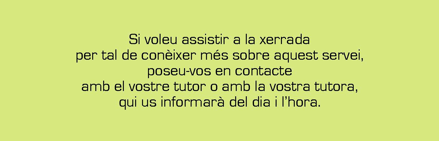 Per participar-hi, haureu de triar el taller que més us interessi i comunicar-ho al vostre tutor o la vostra tutora que us hi guardarà una plaça.