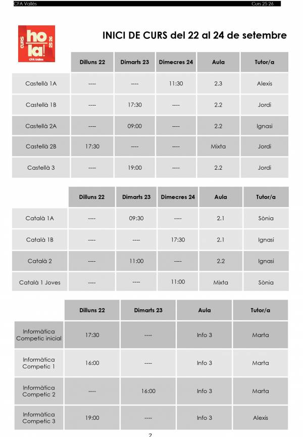 HORARIS CURS 25 26