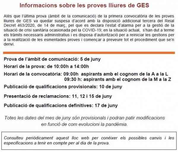 Llegiu amb atenció les instruccions específiques sobre presentació de reclamacions, certificats de superació i indicacions per al dia de la prova, cliqueu AQUÍ.