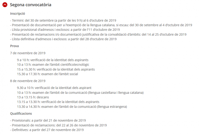 Per inscriure's, AQUÍ. Més informació sobre les proves: calendari, convalidacions i exempcions, resultats, etc., AQUÍ.