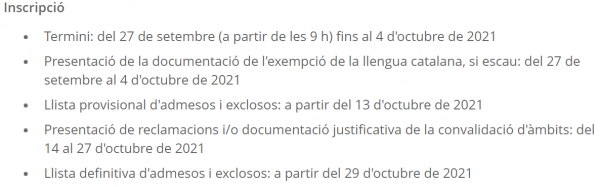 | Horari presentació de sol·licituds de convalidació d'àmbits |