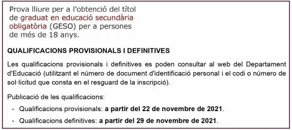 Per a més informació (convalidacions i exempcions, contingut de les proves, consulta dels resultats, normativa…), cliqueu AQUÍ.