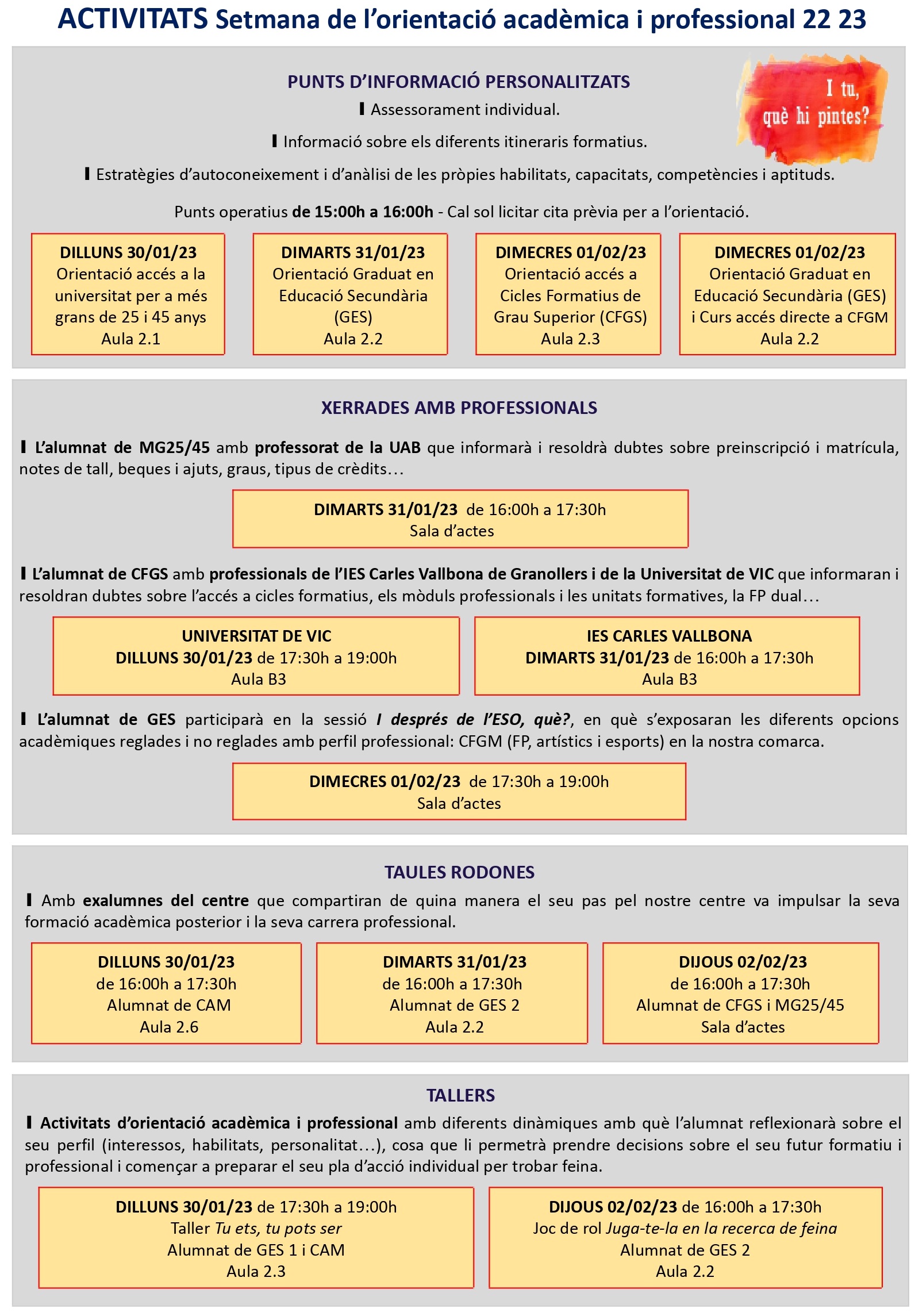 SETMANA DE L'ORIENTACIÓ. I TU, QUÈ HI PINTES. 23 24