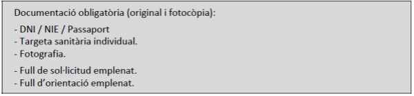 3 Porteu original i fotocòpia de la següent documentació i emplenats i signats el full de sol·licitud i el full d'acollida: